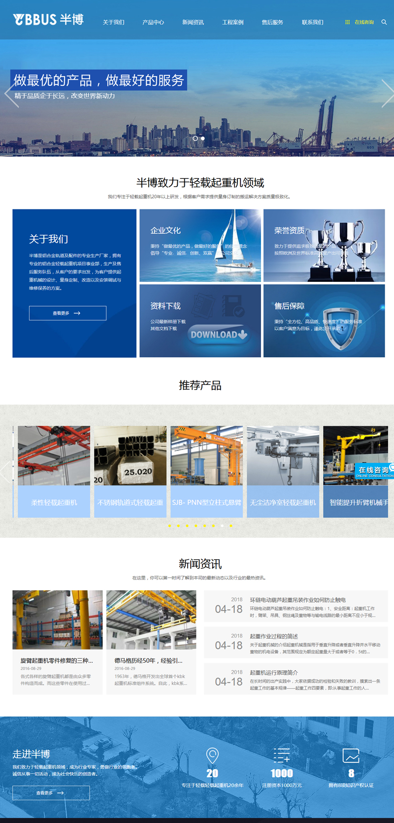 半博機械工程(上海)有限公司專注于輕載輕載起重機20年以上研發,根據客戶需求提供量身訂制的搬運解決方案質量極致化:我們致力于提供追求極致質量的產品,按照歐洲及世界標準高質量產出可靠性:我們精益求精的安全設計理念保障產品使用的可靠性和安全性耐用性:對于細節的精確把握使我們的產品經久耐用。
