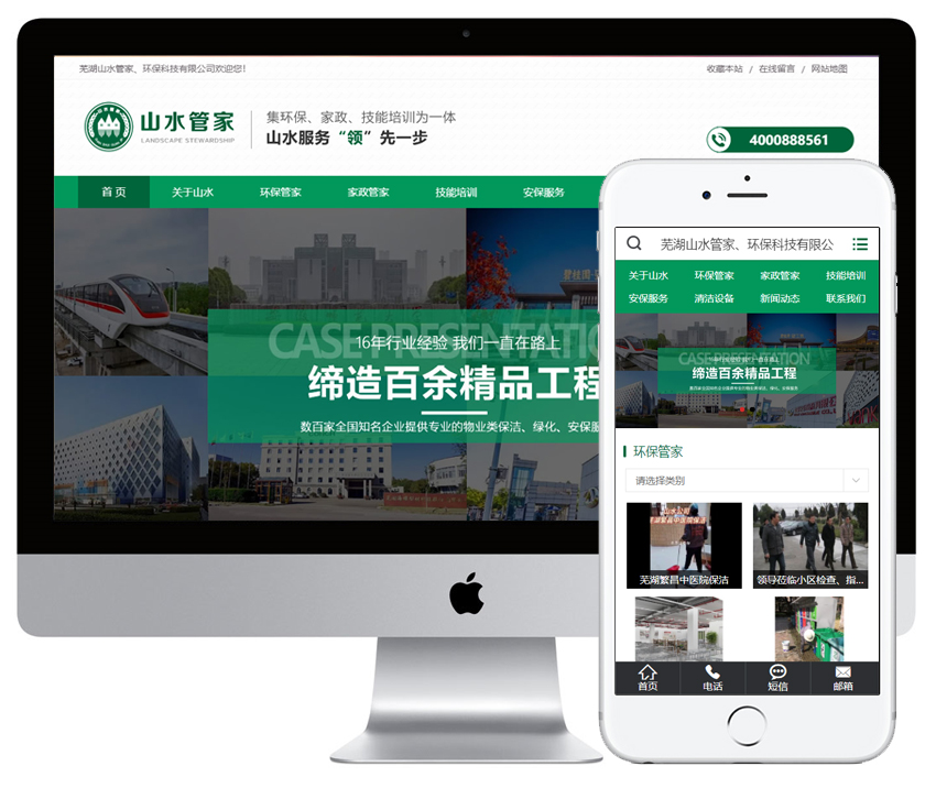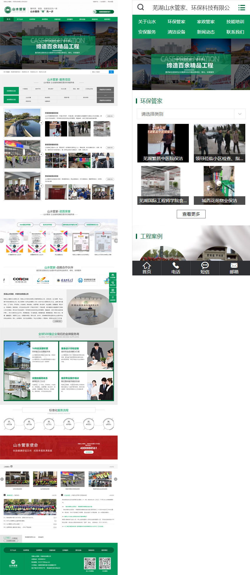 蕪湖山水管家文化科技有限公司、蕪湖山水環保科技有限公司是兩家聯合公司,正規注冊、實力雄厚、專業從事于保潔的服務性公司。我公司擁有一批專業的管理人才和一支技術實力雄厚的員工隊伍。主要從事大廈保潔、工廠保潔、開荒保潔、水電維修、家電清洗、治理甲醇、綠化養護、物業管理、疏通管道、高空作業、玻璃清洗、搬家清洗、涉及綜合物業項目(環境分析測評、環境治理、城市道路和鄉鎮道路環衛清潔以及垃圾清運、綠化設計和實施養護、寫字樓和住宅區的物業項目管理、房屋維修、安防工程的實施和維護等)。我們為各大企業,如:萬科、蕪湖碧桂園、無為碧桂園、南陵碧桂園、繁昌碧桂園、蕪湖火車站、海螺、鑫隆國際、灣里軍工企業、安展蔚然家園、居然之家、安師大、奇瑞等數百家全國知名企業提供專業的物業類保潔、綠化、安保服務。