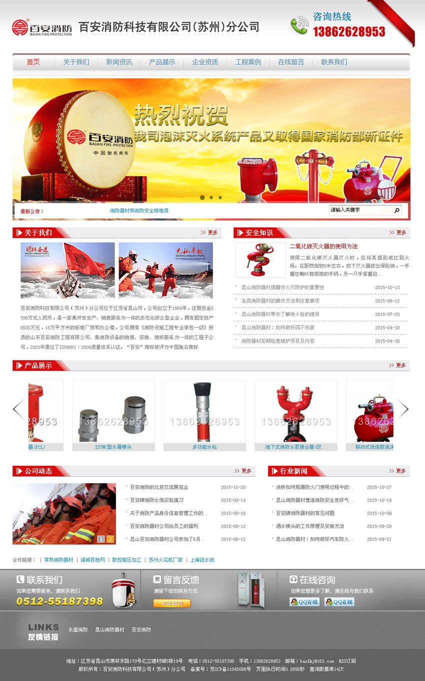 百安消防科技有限公司(蘇州)分公司位于江蘇省昆山市,公司創(chuàng)立于1989年,注冊(cè)資金5788萬元人民幣,是一家集開發(fā)生產(chǎn)、銷售服務(wù)為一體的多元化綜合型企業(yè),擁有固定資產(chǎn)8500萬元,18萬平方米的標(biāo)準(zhǔn)廠房和辦公樓,公司擁有《消防設(shè)施工程專業(yè)承包一級(jí)》資質(zhì)的山東百安消防工程有限公司、集消防設(shè)備的銷售、安裝、維修服務(wù)為一體的工程子公司,2003年通過了ISO9001:2008質(zhì)量體系認(rèn)證?!鞍侔病鄙虡?biāo)被評(píng)為中國(guó)馳名商標(biāo),產(chǎn)品由中國(guó)平安財(cái)產(chǎn)保險(xiǎn)公司承擔(dān)產(chǎn)品質(zhì)量責(zé)任險(xiǎn),現(xiàn)為中國(guó)消防協(xié)會(huì)單位會(huì)員。