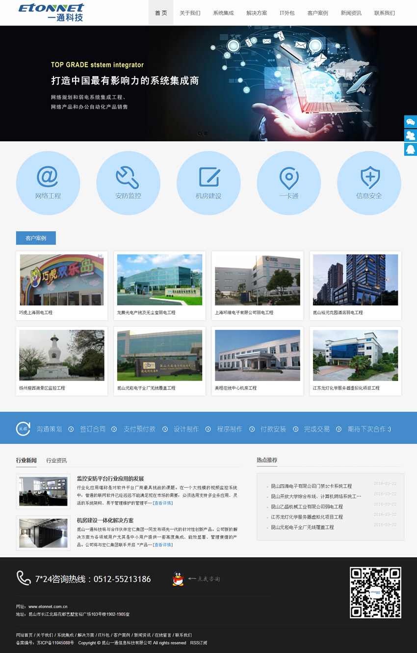 昆山一通信息科技有限公司(以下簡稱“一通科技”)成立于2005年,是一家以技術服務為核心,以弱電工程、系統集成為支柱的高新技術企業。