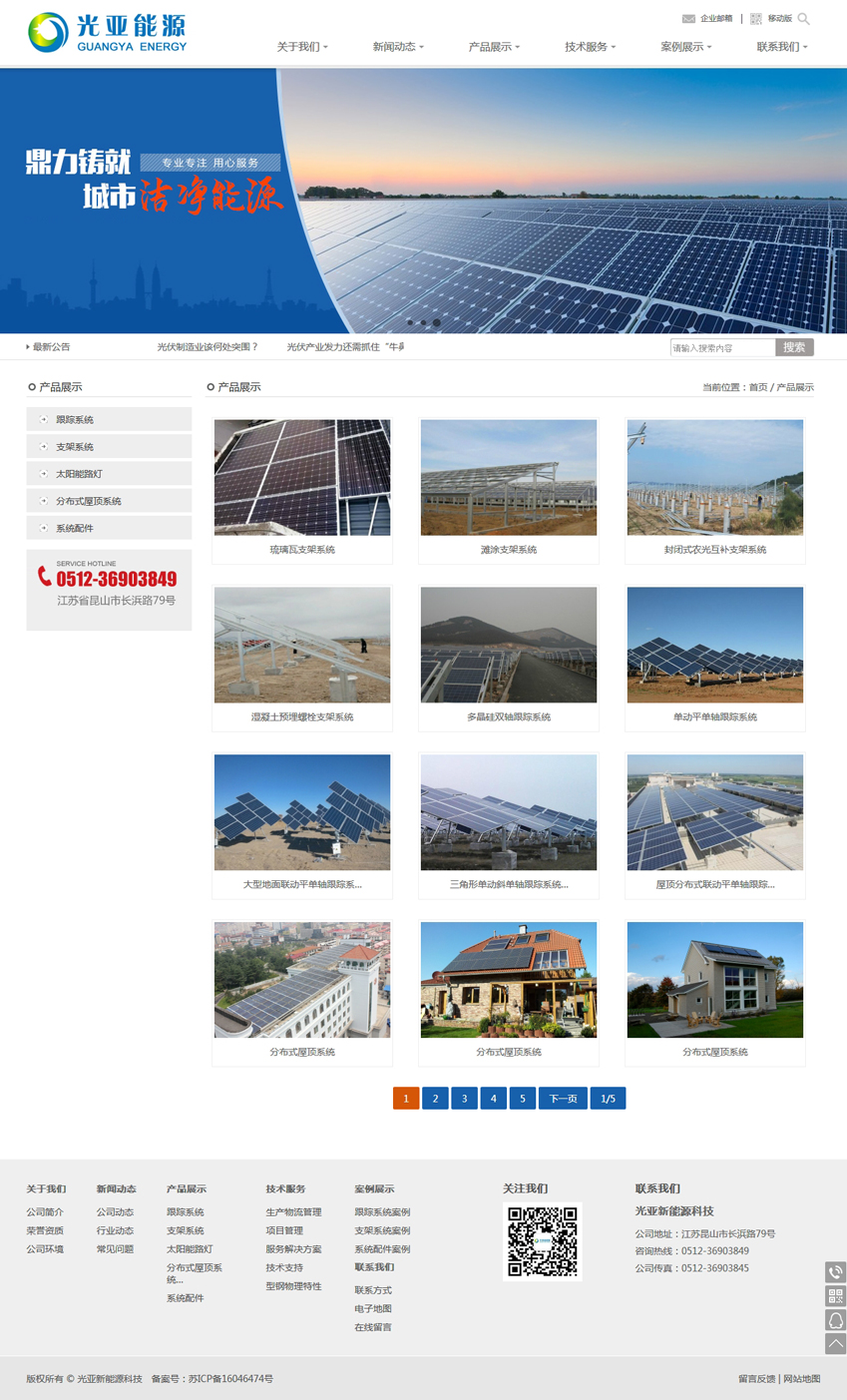 光亞能源科技(昆山)有限公司是專業(yè)的太陽跟蹤系統(tǒng)設計、制造、服務于一體的高科技企業(yè),公司始終立足產業(yè)前沿,秉持向產品要市場、向研發(fā)要未來、向管理要效益的發(fā)展理念,積極推動科學技術創(chuàng)新,不斷提升企業(yè)核心競爭力,力爭將亞新打造成全球領先的太陽跟蹤系統(tǒng)和光伏固定支架系統(tǒng)集成商及運營商。公司自主設計研發(fā)的產品有雙軸跟蹤系統(tǒng)、平單軸跟蹤系統(tǒng)、斜單軸跟蹤系統(tǒng)及光伏固定支架系統(tǒng),廣泛應用于太陽能大中型地面電站和分布式光伏電站,公司擁有二十多頂國家專利和十多條自主設計研發(fā)的全自動化生產線,跟蹤系統(tǒng)年產能1吉瓦。固定支架年產能2吉瓦。